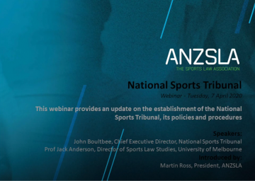 Australia and New Zealand Sports Law Association webinar